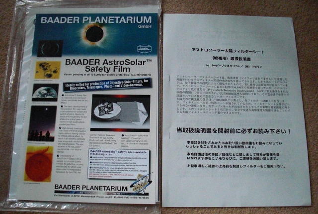 専用フィルタが無い場合は太陽をのぞかない事!!!!!
